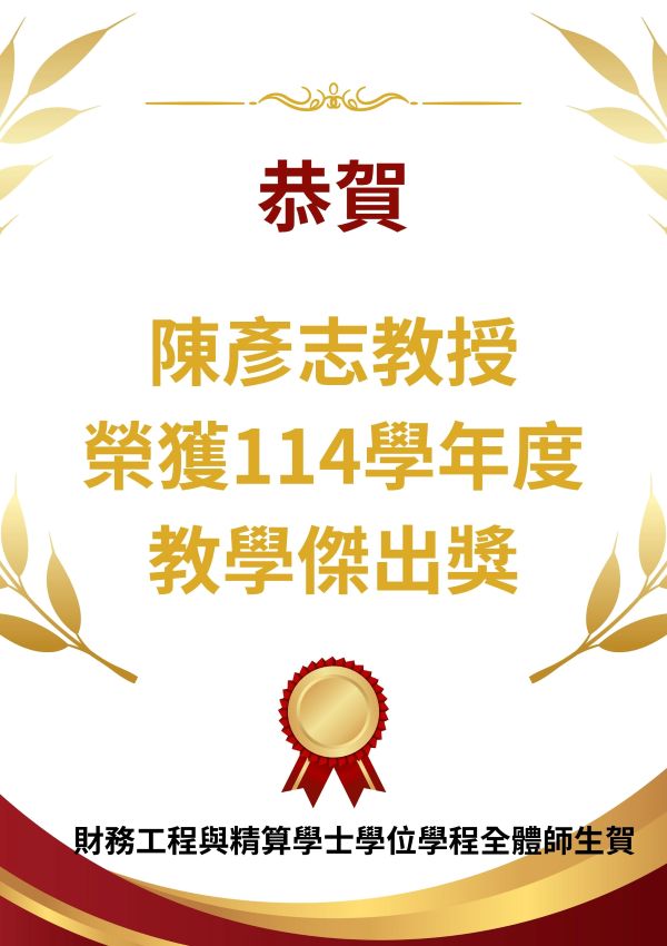 恭賀 陳彥志教授榮獲114學年度教學傑出獎